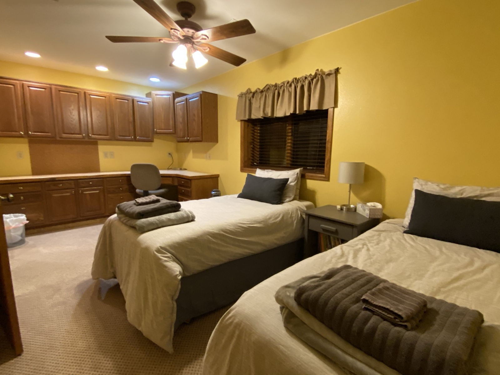 The home can accommodate up to 8 guests for vacation rentals and 10 guests for crafting retreats. The home has 4 bedrooms and 3.5 baths with a main floor master.