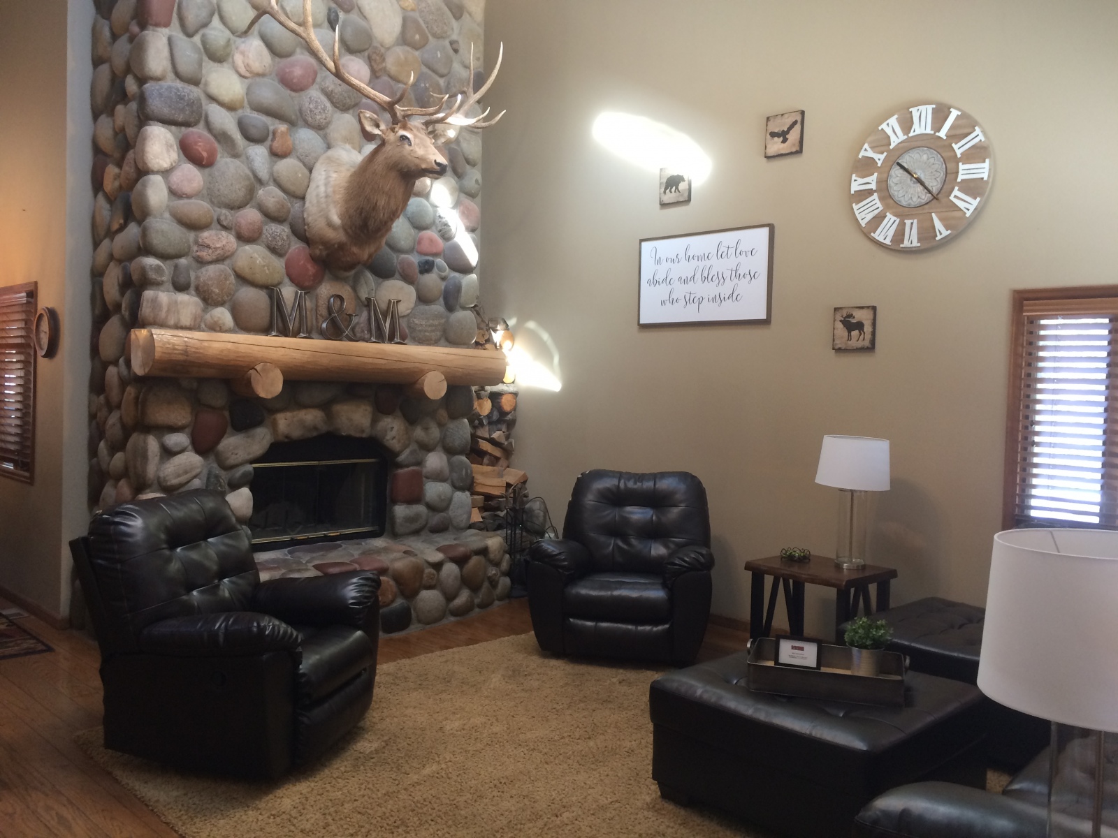 The home can accommodate up to 8 guests for vacation rentals and 10 guests for crafting retreats. The home has 4 bedrooms and 3.5 baths with a main floor master.